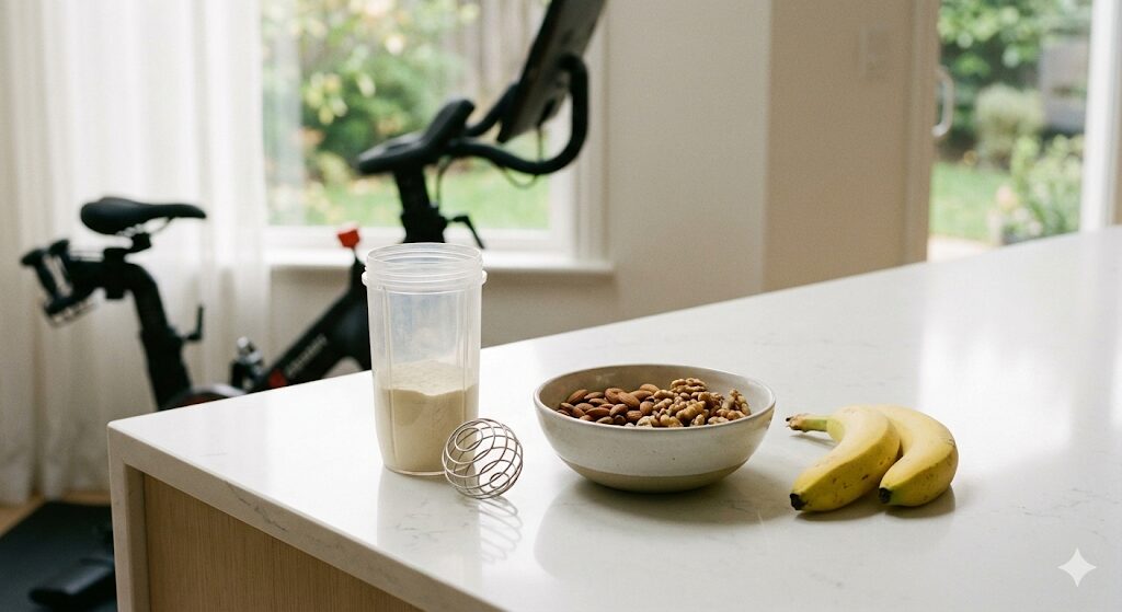 2. 朝食の固定: プロテイン、無塩ミックスナッツ、バナナ(品切れ時はオートミール)。「何を食べるか」という決断をここで排除します。